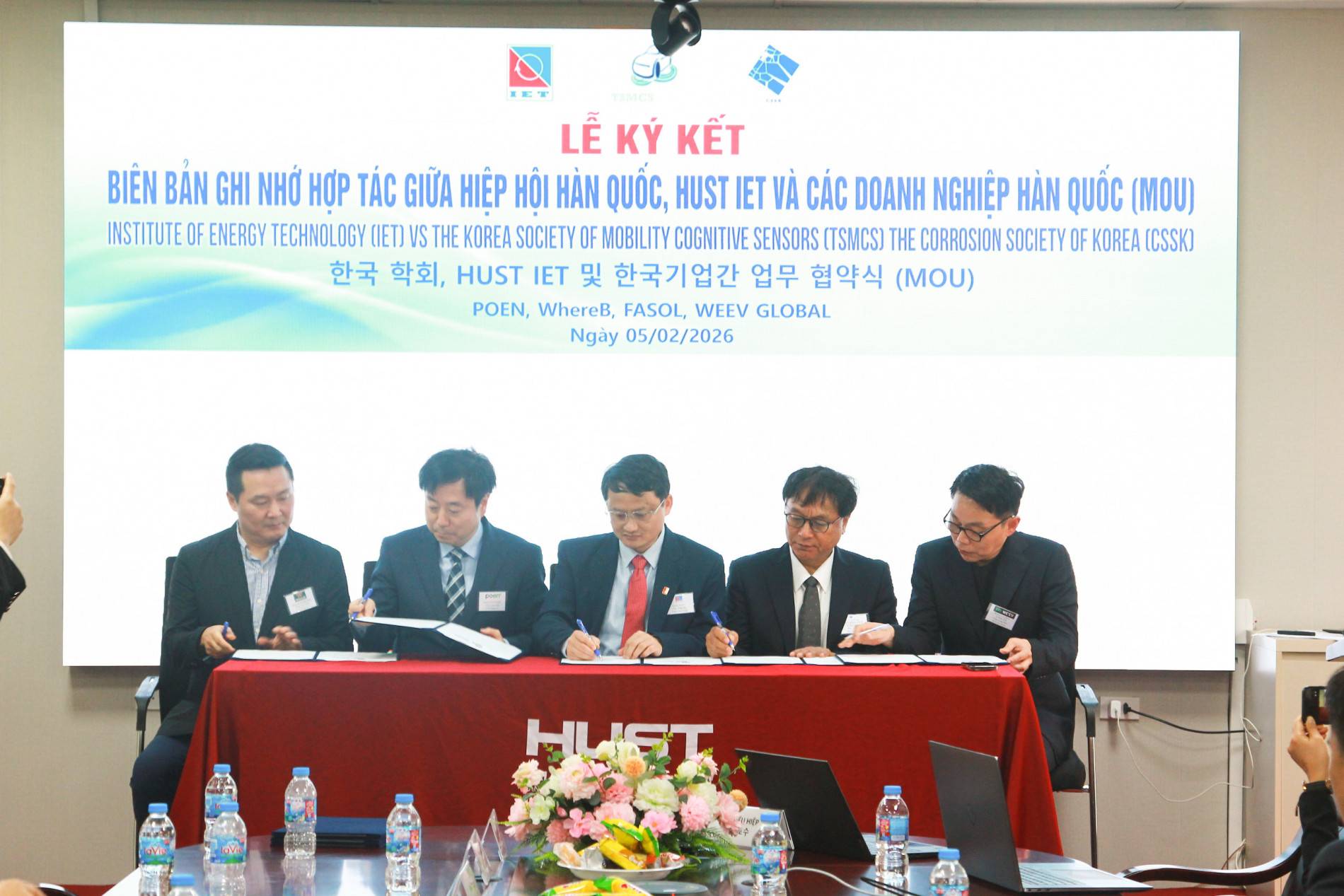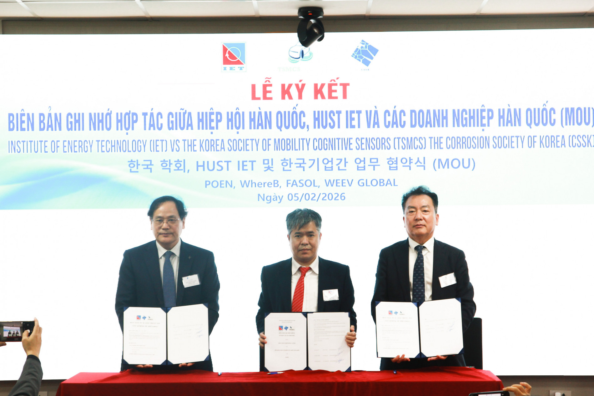 MOU giữa IET – Hiệp hội Cảm biến Nhận thức Di động Hàn Quốc (TSMCS) – POEN – WhereB – WEEV GLOBAL hướng tới hợp tác nghiên cứu, thử nghiệm và thương mại hóa các công nghệ hệ thống tự hành và AI dựa trên năng lượng – nhận thức, phát triển mô hình AI liên kết tự hành – tiêu thụ năng lượng – tình trạng pin – lưới điện, xây dựng hệ thống kiểm chứng độ tin cậy cảm biến, và triển khai pilot tại nhà máy điện/trạm biến áp/khu công nghiệp.